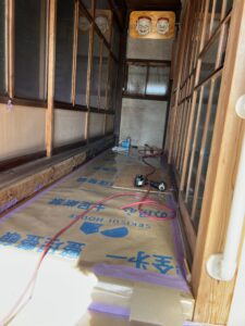 工事のあと、廊下を歩かれたお客さんが